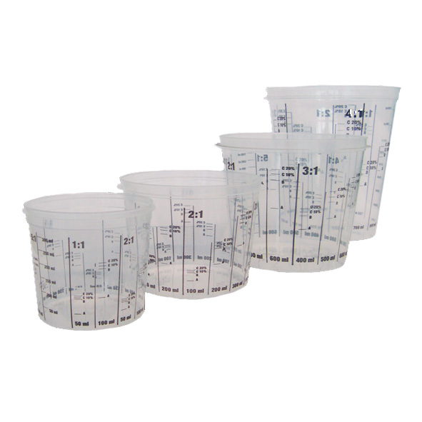 Vaso de mezcla graduado y desechable para la preparación exacta de todo tipo de pinturas. Cierre hermético. Tapa para vaso con cierre de seguridad. Código Tamaño Unidades Caja ENV2601 Bote 400ml 1 200 ENV2602 Bote 750ml 1 200 ENV2603 Bote 1400ml 1 200 ENV2604 Bote 2300ml 1 100 ENV2605 Tapa 400ml 1 200 ENV2606 Tapa